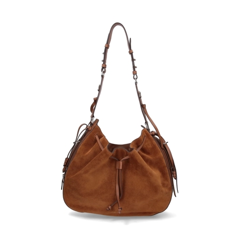 Isabel Marant Ladies Shoulder Bag. SKU: PP0407FA D1C29M50CO. Color: Brown. Size: A 25 X L 38. 5 X P 8 CM. Isabel Marant Bolton Shoulder Bag. Isabel Marant 'Bolton' shoulder bag in brown calf suede, adjustable top handle, adjustable drawstring and button closure, removable inner zip pouch, single main inner compartment. Composition: 100% Calf Leather