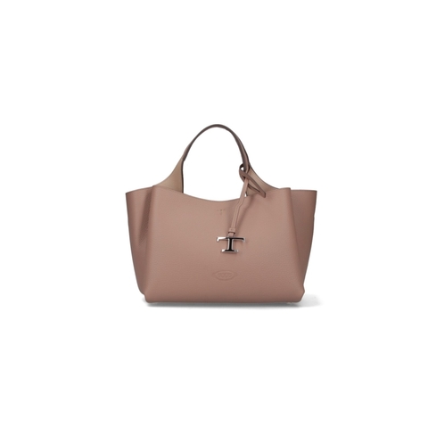 Tods Ladies Tote. SKU: XBWAPAFL100QRI4L62. Color: Beige. Size: A 17 X L 25 X P 14.5 CM. TodS T-Timeless Mini Tote Bag. Tod s beige leather mini T-Timeless tote bag, two top handles, adjustable and removable shoulder strap, silver metal 'T-timeless' logo charm on the front, two flat inner zip pockets, three main unique interior compartments.. Composition: 100% Leather