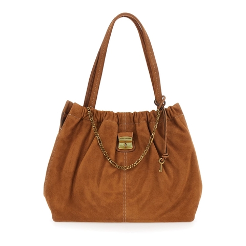 Marc Jacobs Ladies Tote. SKU: 2R5HTT022H01860. Color: Brown. Marc Jacobs The Tote Brown Shoulder Bag With Chain Detail On The Front And Drawstring Closure In Suede Woman. Shoulder bag Brown Two top handles Drawstring closure Padlock detail on the front Kay pendant on the front Chain detail on the front Silver tone metalware Suede Dimensions: 43x28x15 cm Handle drop: 28 cmComposition: 100% Suede Cow Leather