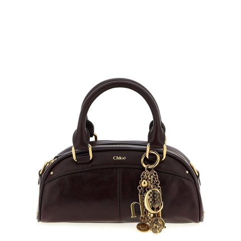 Chloe Ladies Tote. SKU: CH26SS956Q8655H. Color: Bordeaux. Size: W 24. 5 x H 11 x D 11 cm. Chloe Bowling Piccola Handbag. 'Bowling piccola' smooth calf leather handbag, double fixed handle, zip closure, adjustable and removable leather shoulder strap, removable keyring with charms. Composition: 100% calfskin leather (Bos Taurus)