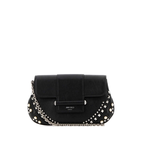 Jimmy Choo Black Leather Bar Clutch - BARWALLETCHAINQXB BLIVANSIL (LPN385155)