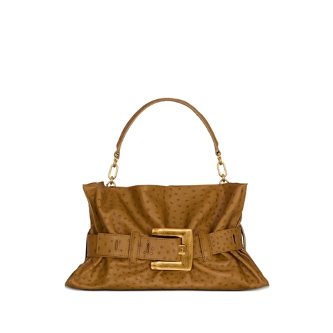 Balmain Ladies Shoulder Bag. SKU: GN1KK990 LONH 8EA. Color: Brown. Balmain Bag. brown embossed gold-tone hardware top handle chain detailing buckle fastening