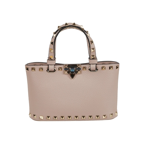Valentino Garavani Ladies Tote. SKU: 7W0P0AT0VSH.P45. Color: Poudre. Size: Width: 19 cmHeight: 12 cmDepth: 5 cmHandle height:. Valentino Garavani Rockstud Bag In Grained Leather. Interior: With 2 Card Slots. Model: Handheld. Closure: With Metal Snap Mechanism. Shape: Rectangular. Handle: Double. Shoulder Strap: Removable, In Metal Mesh. Measurements: Length Of Shoulder Strap From Shoulder: 58 Cm. Composition: 100% Vt