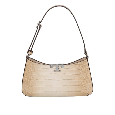 Tory Burch Ladies Shoulder Bag. SKU: 167025.65. Color: Pale Blush. Size: W Height: 5.9 (15cm) x H x D cm handle length: 10.. Tory Burch Eleanor Croc Embossed Slim Shoulder Bag. The ladylike silhouette is finished with smooth Double T hardware. A jewel of craftsmanship, designed to carry with ease.. Croc embossed leather. Magnetic snap closure. Adjustable shoulder strap with 8. 3 (21cm) drop. 2 interior back wall pockets. Dust bag included. Composition: 100% Cow Leather