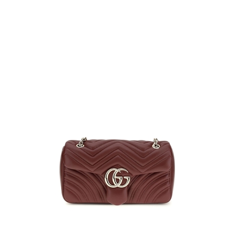 Gucci Ladies Shoulder Bag. SKU: 837267AAE38 6207. Size: W 26 x H 15 x D 7 cm. Gucci Gg Marmont Medium Shoulder Bag. The gg marmont medium shoulder bag by gucci is a classic reinterpreted with contemporary elegance. made of black matelasse lambskin leather in a chevron pattern, it is enhanced by light gold hardware details and gucci red ancora viscose lining. the spring-loaded flap protects items, while the interior features a zippered pocket and the exterior an open pocket. the sliding chain strap allows it to be carried comfortably over the shoulder.. Composition: 100% % Calf Leather Bos Taurus