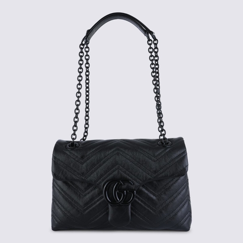 Gucci Ladies Shoulder Bag. SKU: 855371AAFS11000. Color: Black. Size: L: 9.1 H: 6.7 W: 3.5. Gucci Black Leather Shoulder Bag. This bag is crafted from black matelasse chevron nappa leather and features tonal enameled hardware. It includes a black viscose lining, a Double G emblem, and an interior with one open pocket. The sliding shoulder chain strap adds versatility, while the snap magnetic closure ensures secure fastening. Material: 100% Calf Leather.