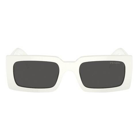 Prada Sunglasses. Series number: PR A07S. Color code: 1425S0. Shape: Rectangular. Lens Width: 52 mm. Lens Bridge: 20 mm. Arm Length: 145 mm. 100% UV protection. Frame Material: Acetate. Frame Color: White. Lenses Type: Dark Grey. Rim Style: Full-Rim. UPC/EAN code: 8056597946544. Prada Dark Grey Rectangular Ladies Sunglasses PR A07S 1425S0 52.<br/><br/>Manufacturer's Packaging Included. Packaging Size And Color May Vary.