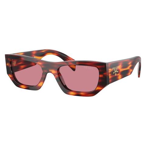 Prada Sunglasses. Series number: PR A01S. Color code: 13O80B. Shape: Rectangular. Lens Width: 53 mm. Lens Bridge: 20 mm. Arm Length: 145 mm. 100% UV protection. Frame Material: Acetate. Frame Color: Havana Red. Lenses Type: Dark Violet. Rim Style: Full-Rim. UPC/EAN code: 8056597970204. Prada Dark Violet Rectangular Unisex Sunglasses PR A01S 13O80B 53.<br/><br/>Manufacturer's Packaging Included. Packaging Size And Color May Vary.