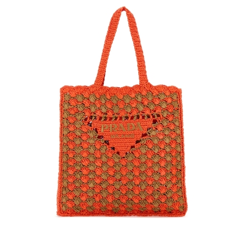 Prada Ladies Shopping Bag. SKU: 1BG393VOOB2CQ2 F0ZVS. Color: Arancio+Caramel. Prada Two-Tone Raffia Shopping Bag. Two-tone Raffia Shopping Bag from Prada.