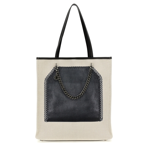 Stella McCartney Ladies Shopping Bag. SKU: 7B0133WP05169043. Color: Multicolor. Stella Mccartney Trompe Loeil Print On Shopping Bag. Trompe L'Oeil Print On' canvas shopping bag with trompe l'oeil 'Falabella' print on the front and back with 3D chain decoration detail, double handle in leather-effect fabric, hook closure. Composition: 80% cotton, 20% polyester.