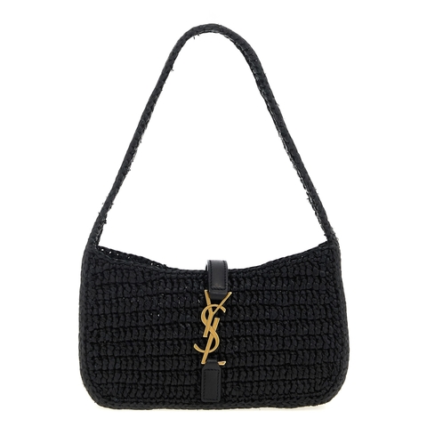 Saint Laurent Ladies Tote. SKU: 742680GAAFB1000. Color: Black. Saint Laurent le 5 a 7 Mini Handbag. Le 5 a 7' mini handbag in woven raffia with leather details, fixed handle, closure with interlocking antiqued metal Cassandre logo, leather card holder. Handcrafted product, any imperfections are to be considered characteristics of uniqueness. Composition: