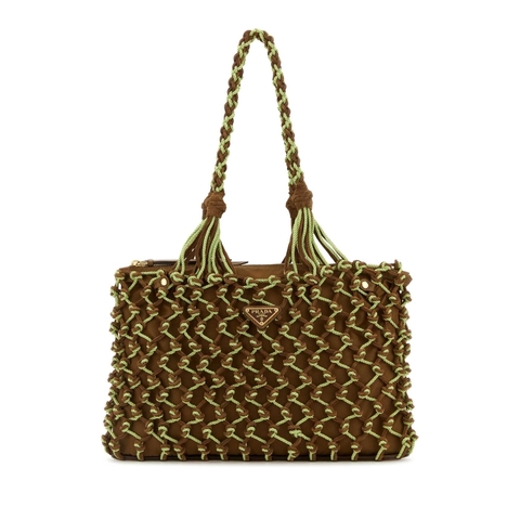 Prada Ladies Shopping Bag. SKU: 1BG5752HHE F0K0K. Color: Cacao+Prato. Prada Two-tone Mesh Shopping Bag. Two-tone Mesh Shopping Bag from Prada.