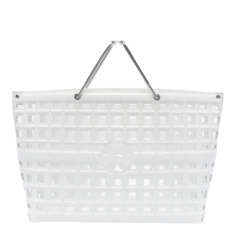 Tory Burch Ladies Shopping Bag. SKU: 168384100. Color: White. Tory Burch Ella Shopping Bag. Tory Burch white Ella shopping bag, 2 handles , frontal tone on tone logo, in crocodile-effect embossed leather. Composition: 100% Calf Leather