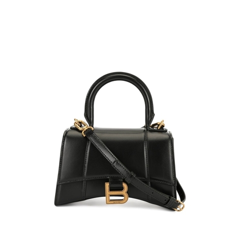Balenciaga Hourglass XS Handbag In Black Shiny Box Calfskin - 5928331QJ4M1000 (LPN386225)