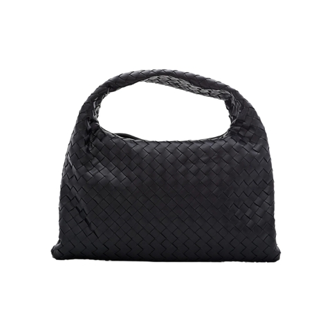 Bottega Veneta Ladies Shoulder Bag. SKU: 796262 V3IV1 1019. Color: Black/Brass. Bottega Veneta Small Hop Hobo Shoulder Bag. A sleek and versatile hobo shoulder bag from Bottega Veneta, crafted in supple calf leather for a luxurious feel. Its minimalist silhouette is elevated with clean lines, a comfortable handle, and refined detailing, making it perfect for everyday wear or stylish outings. Dimensions: 8.3 H 18.1 W 3.9 D (21 46 10 cm)Handle Drop: 7.9 (20 cm). Composition: 100% Calf Leather. Made in Italy.