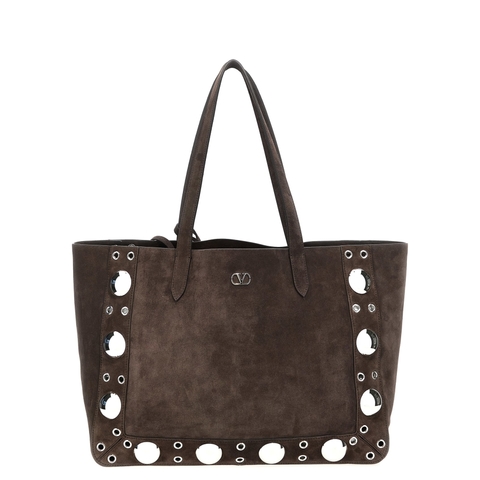 Valentino Ladies Shopping Bag. SKU: W2B0R79JET0TO. Color: Brown. Valentino Garavani Nellcote Shopping Bag. nellcote' suede shopping bag with profile decorated with ball studs and rivets, double fixed handle, removable matching clutch. Composition: 100% cow leather (Bos Taurus).