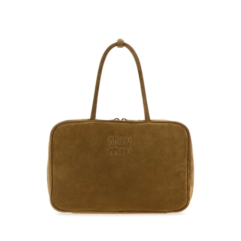 Miu Miu Ladies Tote. SKU: 5BB117VMON2CSS F0393. Color: Oliva. Miu Miu Beige Suede Handbag. Beige Suede Handbag from Miu Miu.