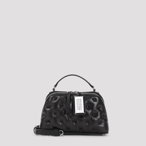 Maison Margiela Ladies Shoulder Bag. SKU: SB1WG0065.P6434 T8013. Color: Black. Maison Margiela Glam Slam Strapezoid Bag. Maison Margiela Black Nappa Ovine Leather Glam Slam Strapezoid Bag. Pure black nappa ovine leather bag, top handle, top two-ways zipped fastening, top detachable logoed tag, adjustable and detachable shoulder strap with chain detail, one main compartment, front quilted effect, silver-tone hardware.