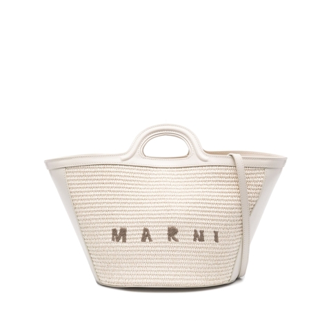 Marni Ladies Tote. SKU: BMMP0068Q0P3860_00W12. Color: White. Marni Shell Tropicalia Summer Bag In Leather And Raffia. Leather/cotton/polyamide/brass.