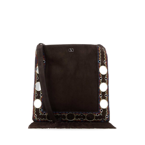 Valentino Garavani Ladies Crossbody. SKU: 7W2B0R33KJK_RCB. Color: Multicolortestadimoro. Valentino Garavani Brown Suede Nellcote Crossbody Bag. 100% Suede.