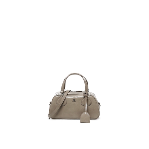 Courreges Ladies Bowling Bag. SKU: 325GSA167CR00431098. Color: Mocha. Courreges Friday Bowling Bag. Made of calfskin - Zip closure - Top leather handles - Adjustable and removable shoulder strap - Made in Italy - Dimensions: 26 x 29 x 22 cm - Color: Mocha
