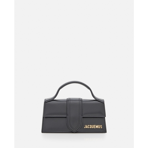 Jacquemus Ladies Top Handle Bag. SKU: BAW00006BC01C01990. Color: Black. Jacquemus Le Bambino Leather Top Handle Bag. Detachable, adjustable shoulder strap. Single leather top handle. Front flap with magnetic closure. Front metal logo detail. One back patch pocket. Cotton lining. Color: black. Composition: 100% Cow Leather.
