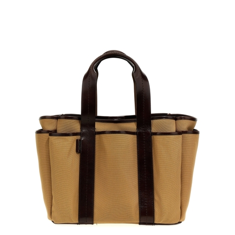 Max Mara Ladies Shopping Bag. SKU: GARDENCABASL003. Color: Brown. Size: W 55 x H 29 x D 24 cm. Max Mara Garden Shopping Bag. 'Garden' canvas and leather shopping bag with outer pockets, snap hook closure. Composition: 100% cotton