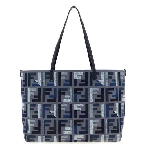 Fendi Ladies Shopping Bag. SKU: 8BH425AV11F1LAZ. Fendi Large Roll Shopping Bag. Originally created in 1997 alongside the iconic Baguette, the Roll Large shopper is a timeless carry-all that blends practicality with refined design. Crafted from blue canvas, it features FF motif embroidery rendered in matching blue embossed yarn for a subtle yet distinctive finish. The spacious interior includes a removable blue leather zip pouch, while gold-tone hardware adds a polished touch. Designed for everyday versatility, it can be carried by hand or worn on the shoulder using the tone-on-tone calfskin leather handles.Material: Canvas with calfskin leather trim; textile lining.Hardware: Gold-tone.Dimensions: 13.8 12.6 7.7 (W: 35 cm H: 32 cm D: 19.5 cm). Made in Italy.
