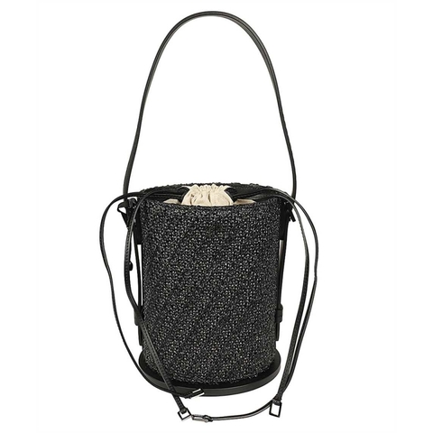 Max Mara Ladies Bucket Bag. SKU: 2414511032600_005. Color: Black. Max Mara Bucket Bag. Drawstring closureone card slotfront metal logoadjustable and removable shoulder strapdark-tone metal hardwarewidth: 15,5 cmheight: 24 cmdepth: 14 cmstrap: 148 cm100% polyamide. Composition: 100% % Polyamide
