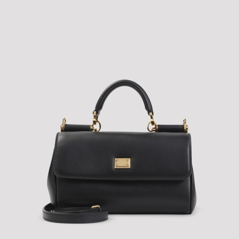 Dolce and Gabbana Ladies Handbag. SKU: BB7864B732180999. Color: Black. Dolce & Gabbana Top Handle Bag. Dolce & Gabbana Black Calf Leather Top Handle Bag. Crafted in calf leather and pvc. Top handle, top cylinder details, front flap fastening, front metallic logoed detail, adjustable and detachable shoulder strap, one main compartment. Gold-tone hardware.