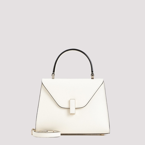 Valextra Ladies Top Handle Bag. SKU: WBES0036028LOC99 WW. Color: Ww Pergamena. Size: W:22cm H:16cm D:12cm. Valextra Iside Top Handle Mini Bag. Valextra White Iside Top Handle Mini Bag. Pergamena white leather, golden-tone clasp closure with a leather insert. Tonal detachable and adjustable strap, signature black lacquered Costa edges painted by hand. Handle on top, golden-tone hardware. Fully lined.
