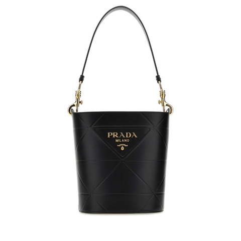 Prada Ladies Bucket Bag. SKU: 1BE048VMCOASK F0002. Color: Black. Prada Black Leather Bucket Bag. Black Leather Bucket Bag from Prada.