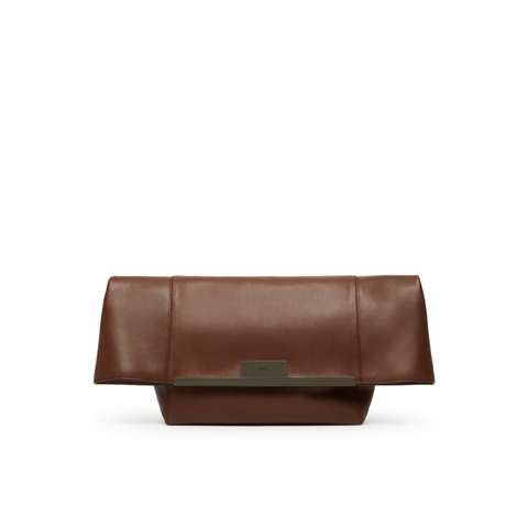 Max Mara Ladies Tote. SKU: 2514511043600_014. Color: Cocoa. Large Clutch In Natural Leather Max Mara. 100% Calf Leather.