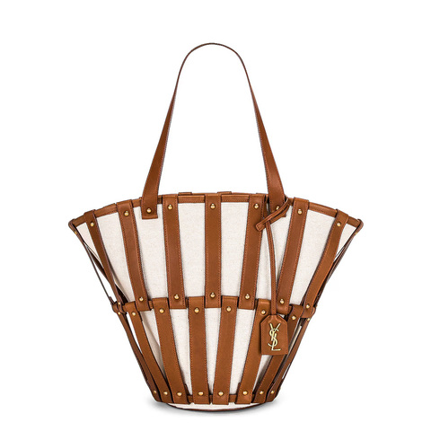 Saint Laurent Ladies Shopping Bag. SKU: 707396 95G3W 9093. Color: Greggio /Brick. Saint Laurent Two-tone Canvas And Leather Medium Beatrix Shopping Bag. Two-tone Canvas And Leather Medium Beatrix Shopping Bag from Saint Laurent.