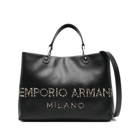 Emporio Armani Ladies Shopping Bag. SKU: EW000360AF22010FC294. Color: Black. Size: DEPTH: 13.0 CentimetresHEIGHT: 27.0 CentimetresWID. Emporio Armani Myea Medium Shopping Bag. black top handles logo applique silver-tone hardware detachable shoulder strap internal zip-fastening pocket. Composition: 100% Bovine Leather
