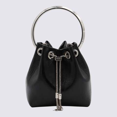 Jimmy Choo Ladies Top Handle Bag. SKU: BONBONTZZ000071. Color: Black. Jimmy Choo Black Leather Top Handle Bag. Black leather top handle bag from Jimmy Choo featuring top handle, chain-link shoulder strap, drawstring fastening and main compartment.