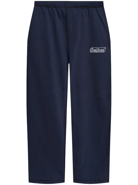 navy blue cotton jersey texture embroidered logo to the side internal drawstring fastening waist straight leg slip pockets to the sides rear patch pocket