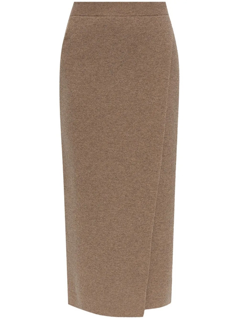 brown wool-cashmere blend fine knit wraparound style high waist mid-length
