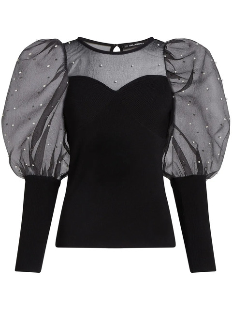 Karl Lagerfeld pearl-embellished puff-sleeve top - 24050003 (LPN103612)