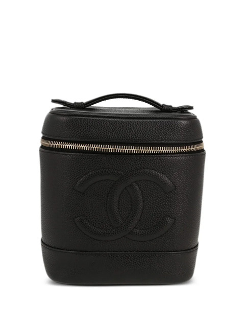 circa 2003 black leather grained texture signature quilted interlocking CC logo single flat top handle all-around zip fastening branded zip puller main compartment internal elasticated slip pocket gold-tone hardware Condition: GOOD. This previously owned and used item is in good condition with minimal signs of use. This may include fading of material or plating and scratches.