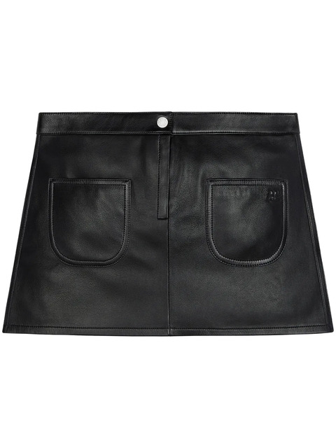 black lambskin two front patch pockets low-rise front button and zip fastening A-line straight hem thigh-length