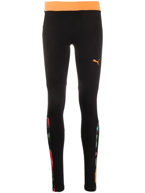Black and orange contrast waistband leggings from PUMA featuring an elasticated waistband, a slim fit and a regular length.