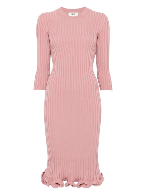 FENDI ribbed-knit ruffled midi dress - 30550727 (LPN113518)