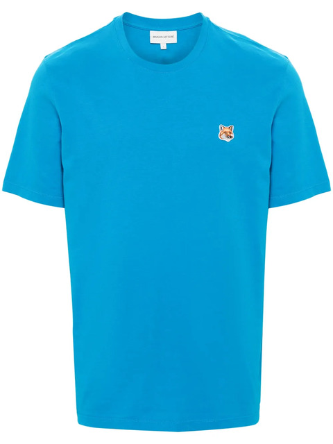 azure blue cotton jersey texture round neck short sleeves embroidered Fox Head patch at the chest straight hem