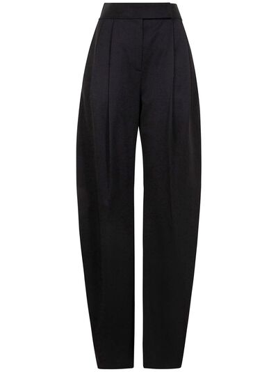 black high-waisted two rear welt pockets pleat detailing straight leg