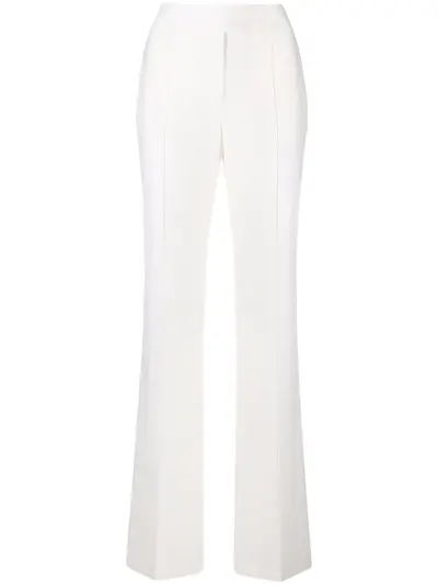 daisy-white stretch-wool seam detailing mid-rise concealed front fastening two side inset pockets tailored cut floor-length