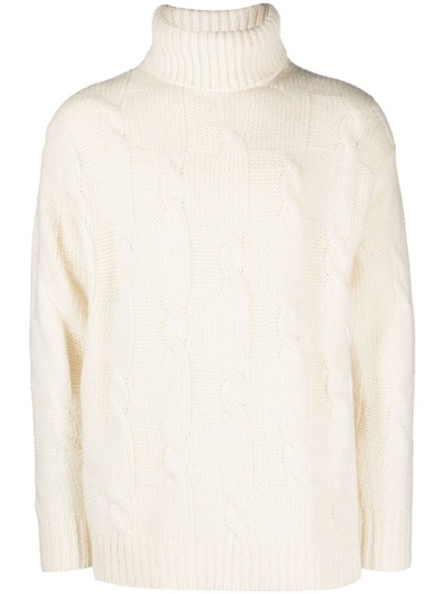 ivory white wool blend knitted construction roll neck drop shoulder long sleeves straight hem