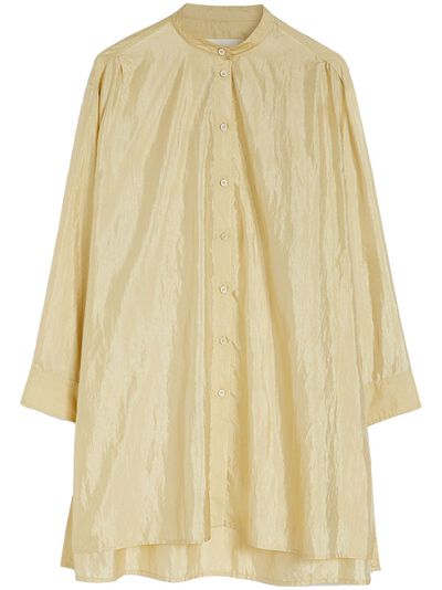 almond yellow polyamide/silk blend front button fastening band collar long sleeves side slits pleat detailing at the rear
