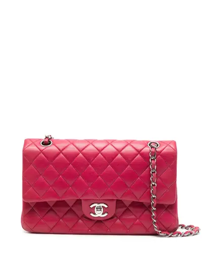 circa 2010 raspberry pink leather smooth grain signature Mademoiselle quilting sliding chain-link shoulder strap signature interlocking CC turn-lock fastening slip pocket to the rear partitioned compartment multiple internal slip pockets internal zip-fastening pocket internal logo stamp This piece comes complete with a protective dust bag. Condition: GOOD. This previously owned and used item is in good condition with minimal signs of use. This may include fading of material or plating and scratches.