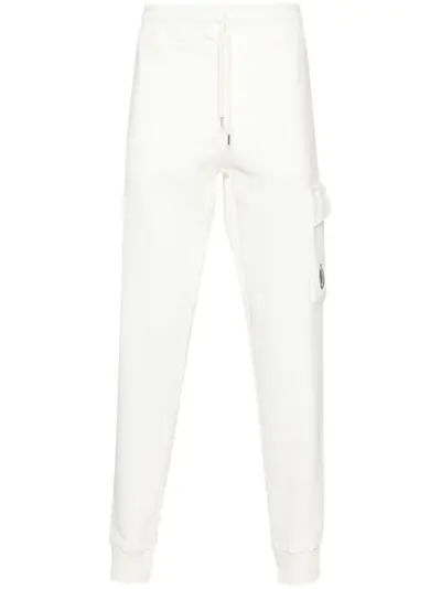white cotton jersey texture signature Lens detail two side inset pockets side cargo pocket ribbed ankles elasticated drawstring waistband C.P. Company suggests removing any detachable accessories before washing.